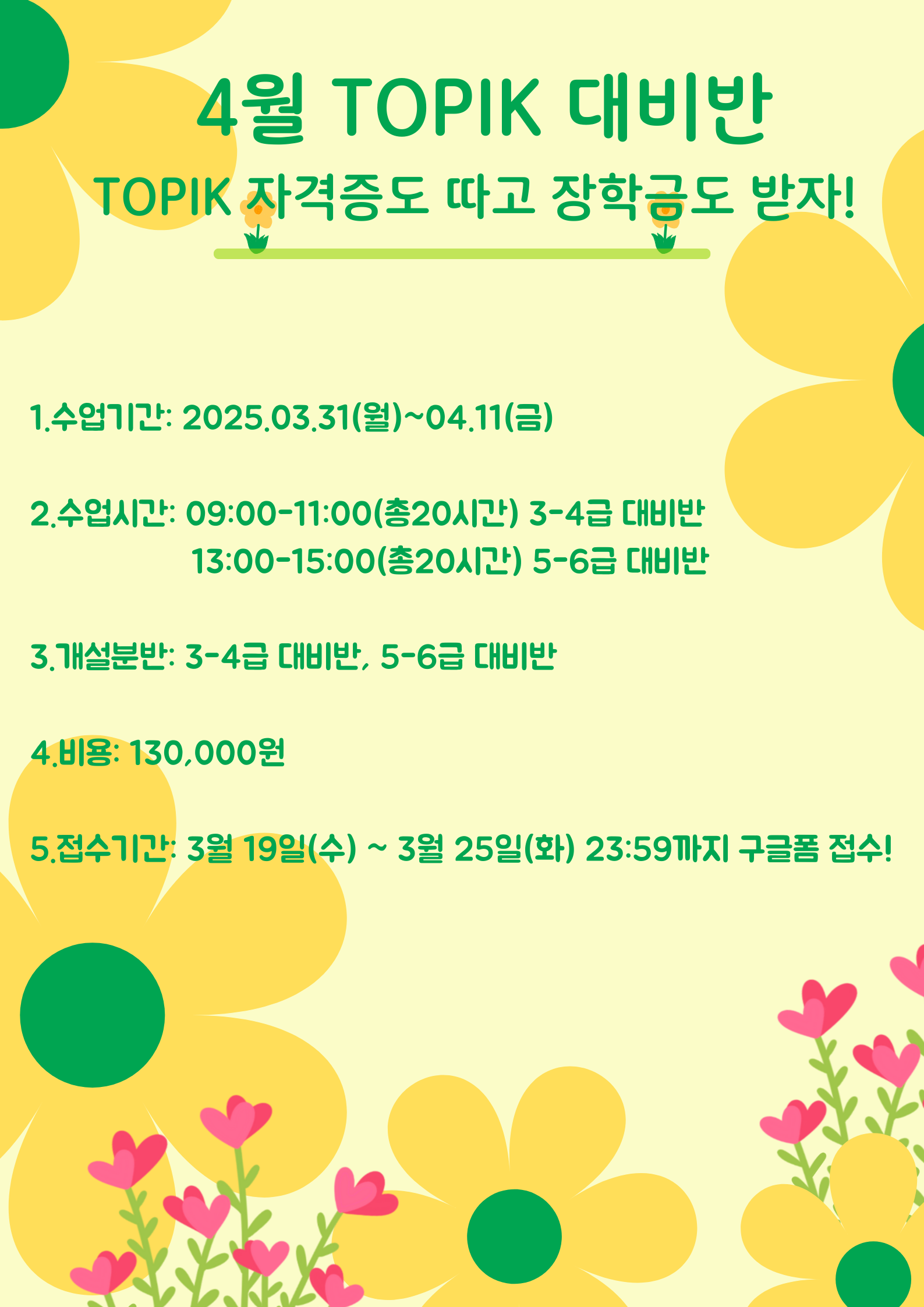 ○ 수강료 납부기간 : 3월 27일(목)까지