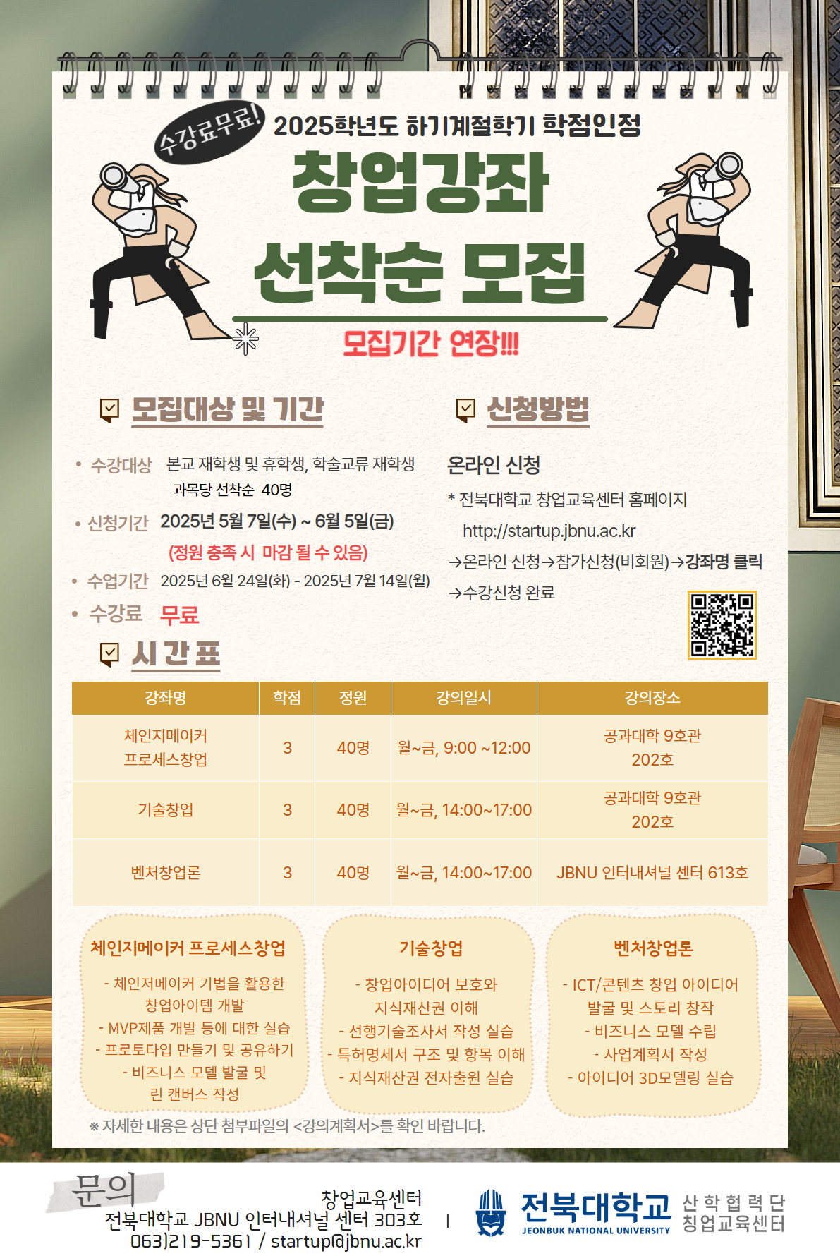 [창업교육센터] 2025학년도 하기계절학기 창업강좌 수강생모집(5.7.(수)~6.5.(금))(연장)