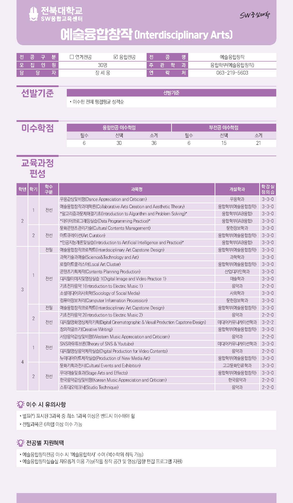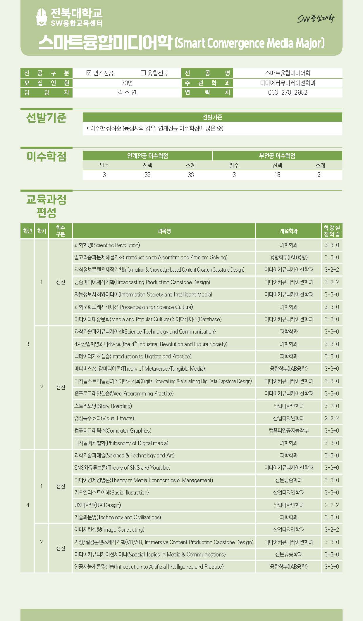 - SW융합전공: 예술융합창작, 메타버스/엔터테인먼트