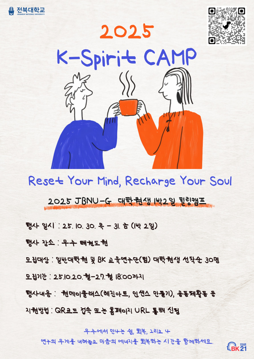 ‘2025 JBNU-G 대학원생 1박 2일 힐링캠프’를 개최합니다.