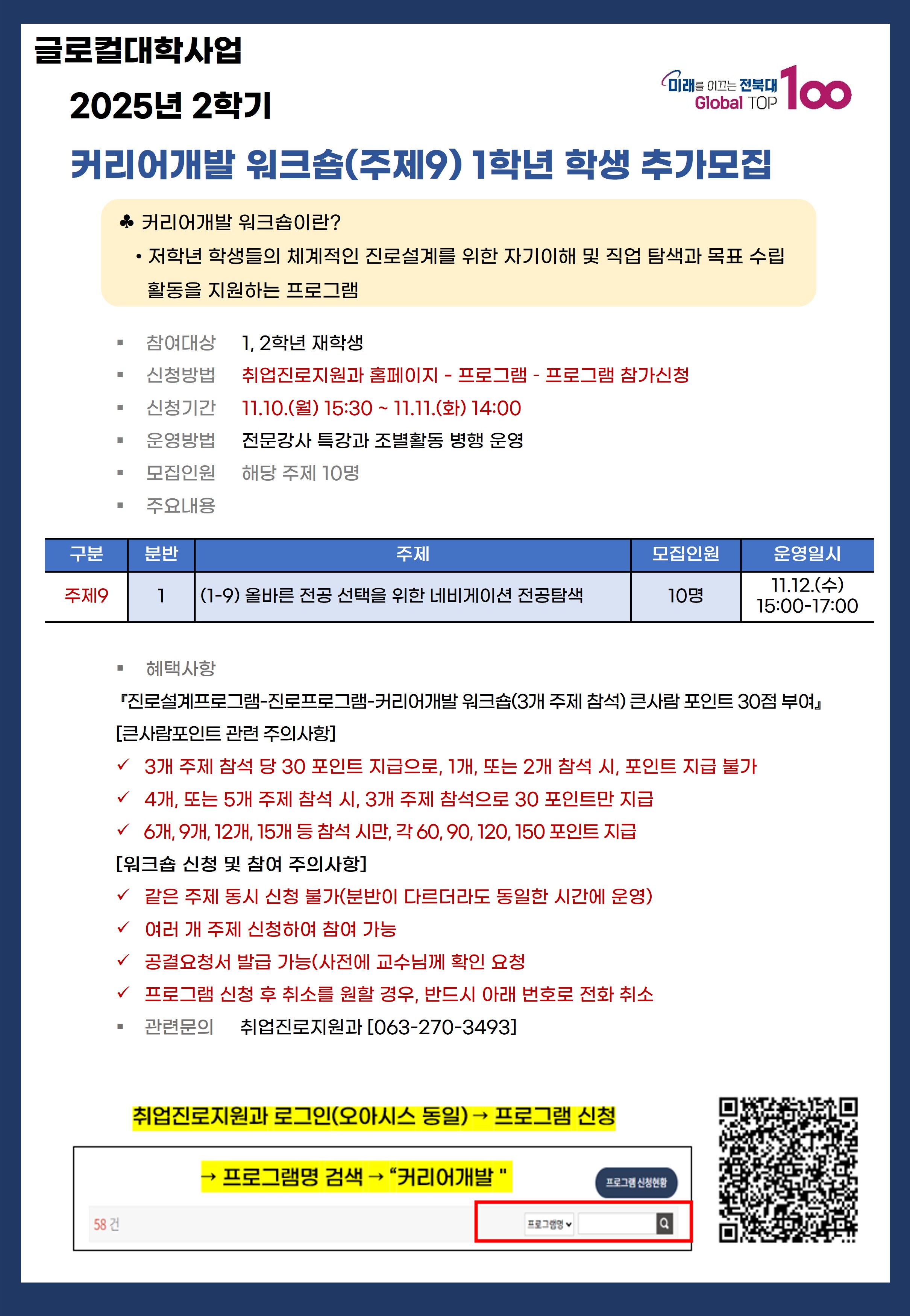 취업진로지원과 홈페이지(https://career.jbnu.ac.kr/sites/career/index.do) 로그인(로그인 정보는 오아시스와 동일)