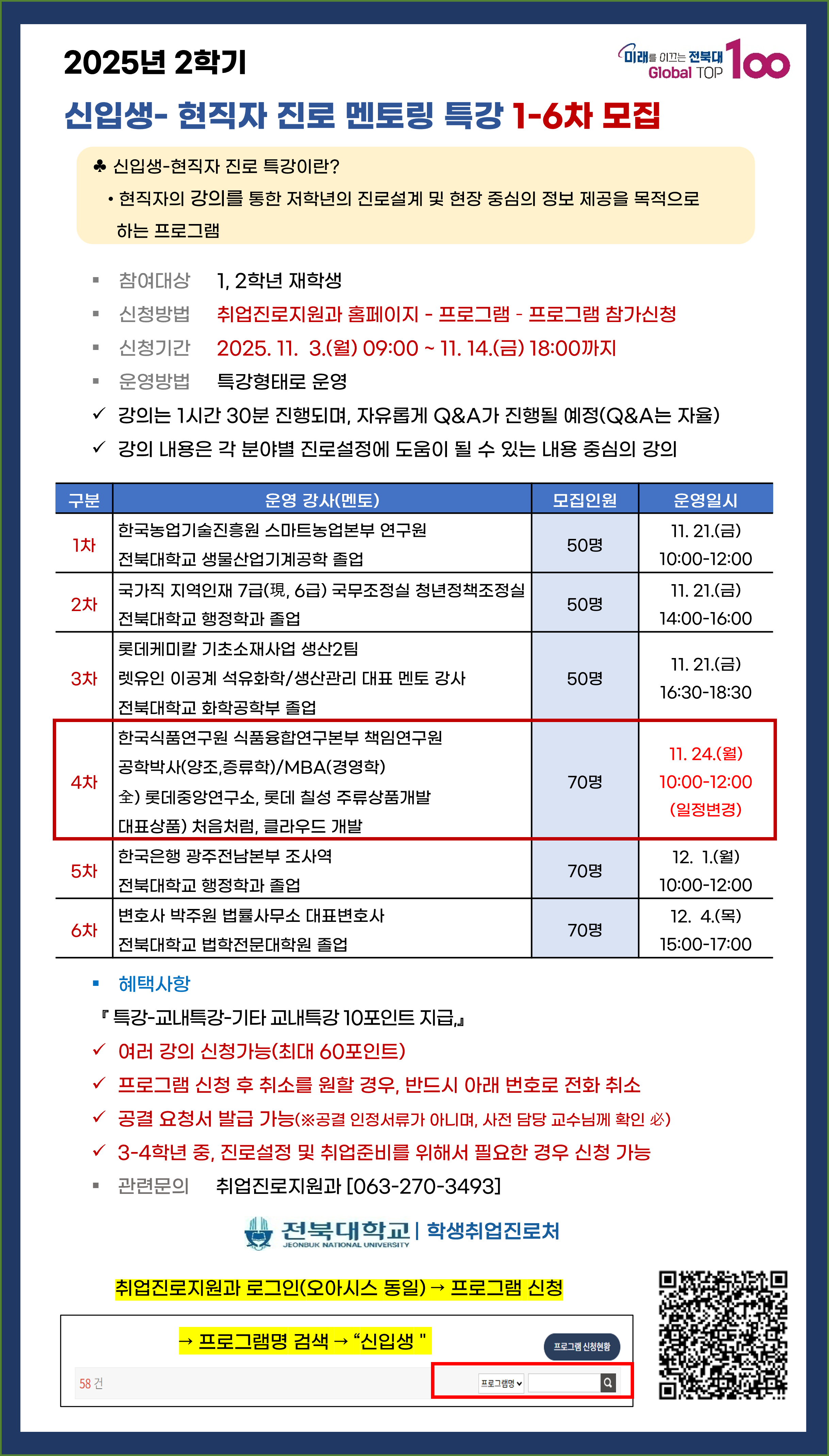 ※ 4차 일정이 2025.11.25.(화) 10:00-12:00에서 2025.11.24.(월)10:00-12:00로 변경되었습니다.