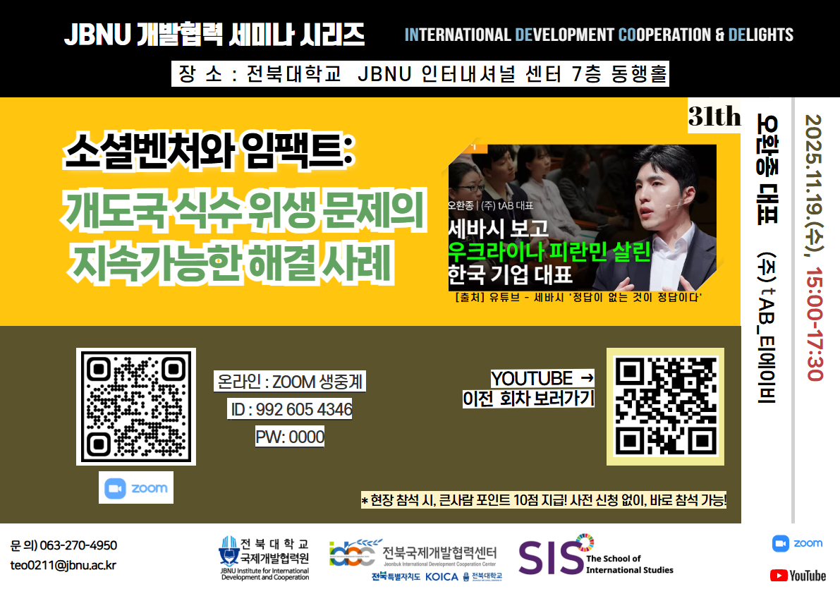 ⭐JBNU 개발협력 세미나 시리즈: 인디코드(International Development Cooperation & Delights)⭐