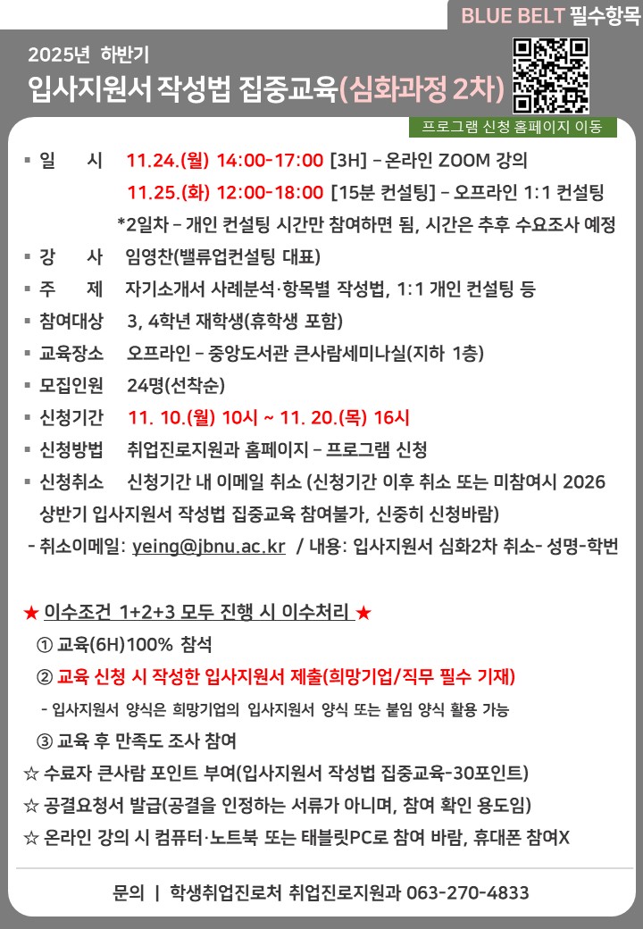 [BLUE BELT 필수항목] 입사지원서 작성법 집중교육(심화2/3차) 참여자 모집 안내