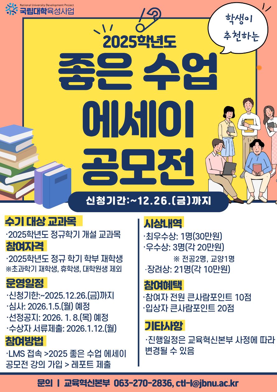 [교육혁신본부] '2025학년도 좋은 수업 에세이 공모전' 운영 안내