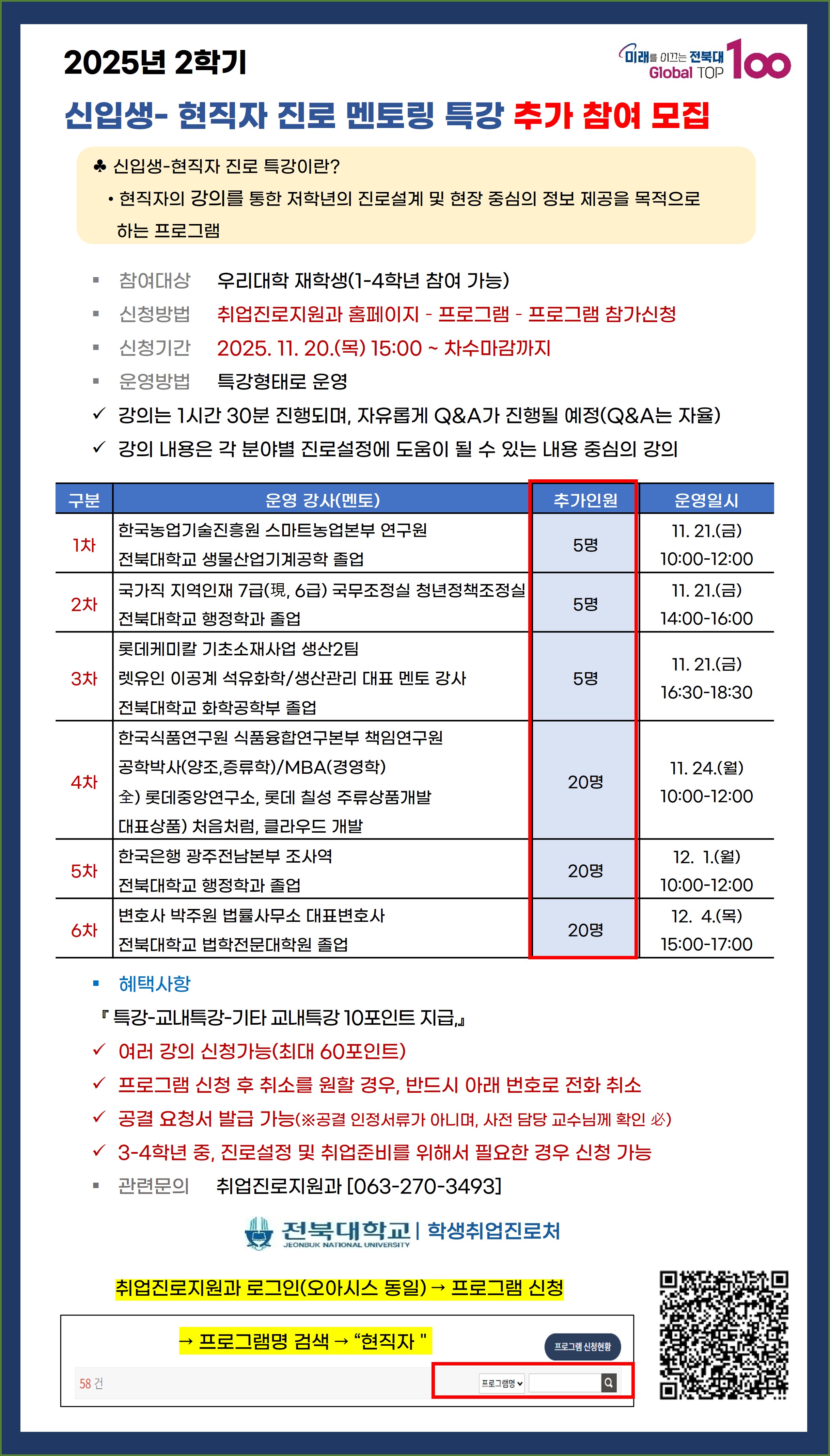 신입생-현직자 진로 멘토링 특강 추가 참여자 모집(3-4학년 가능)