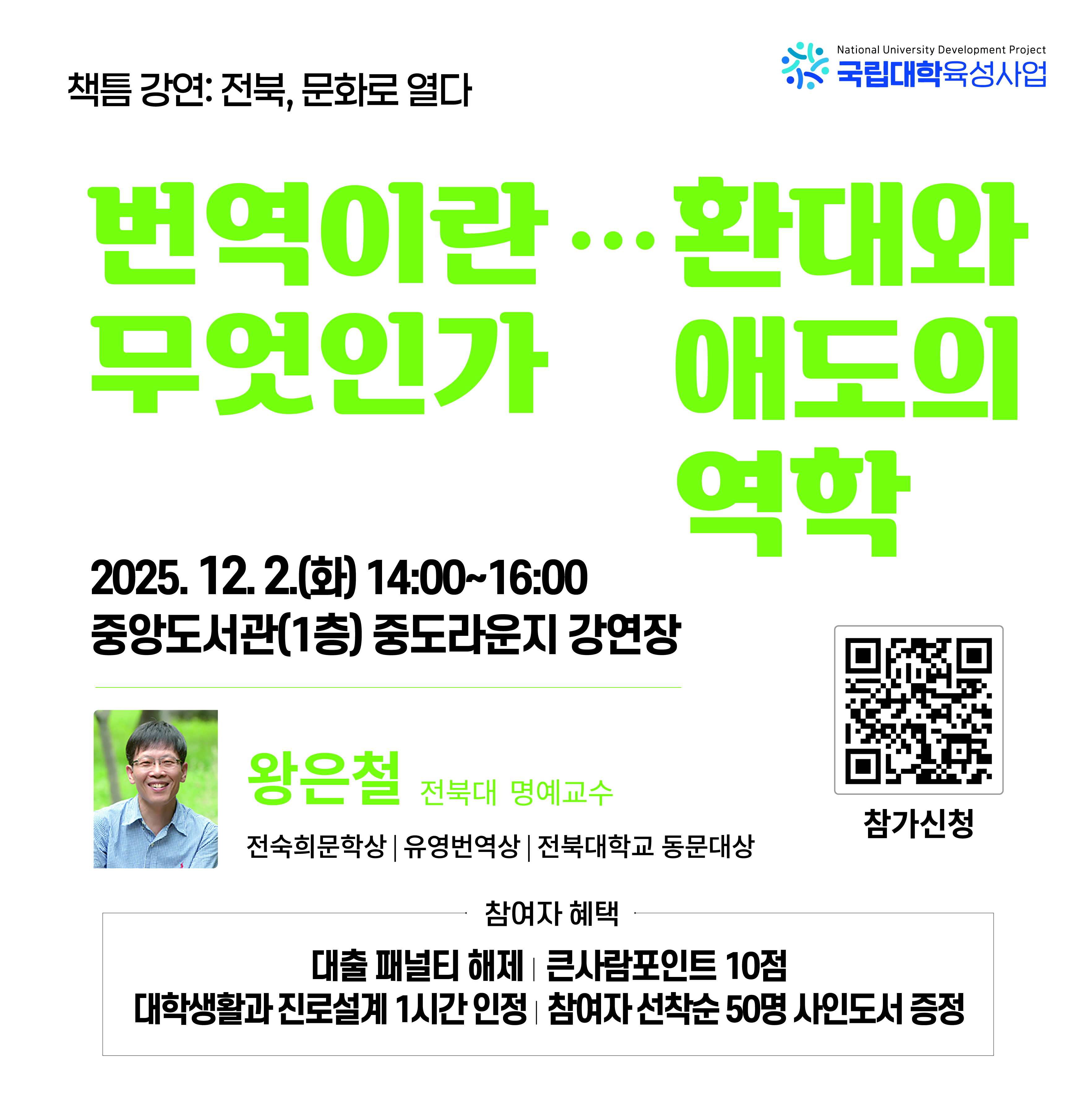 왕은철 명예교수 강연 <번역이란 무엇인가-환대와 애도의 역학> 안내