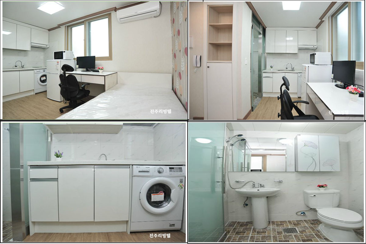 ❒ 풀옵션 : 각 방문 전자번호키. 인터폰. 개인용 세탁기. 에어컨. 싱크대.
